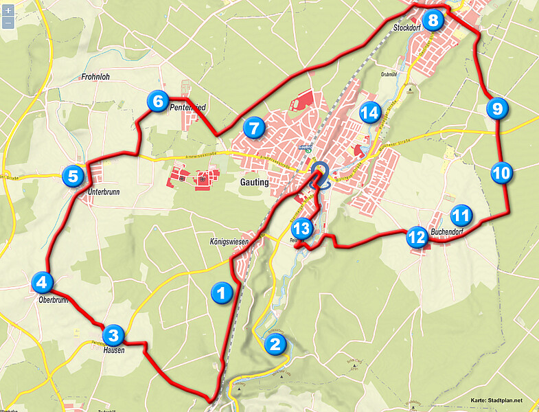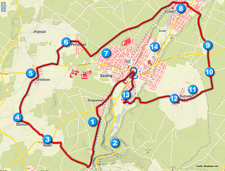 Rad- und Wanderkarte in und um Gauting